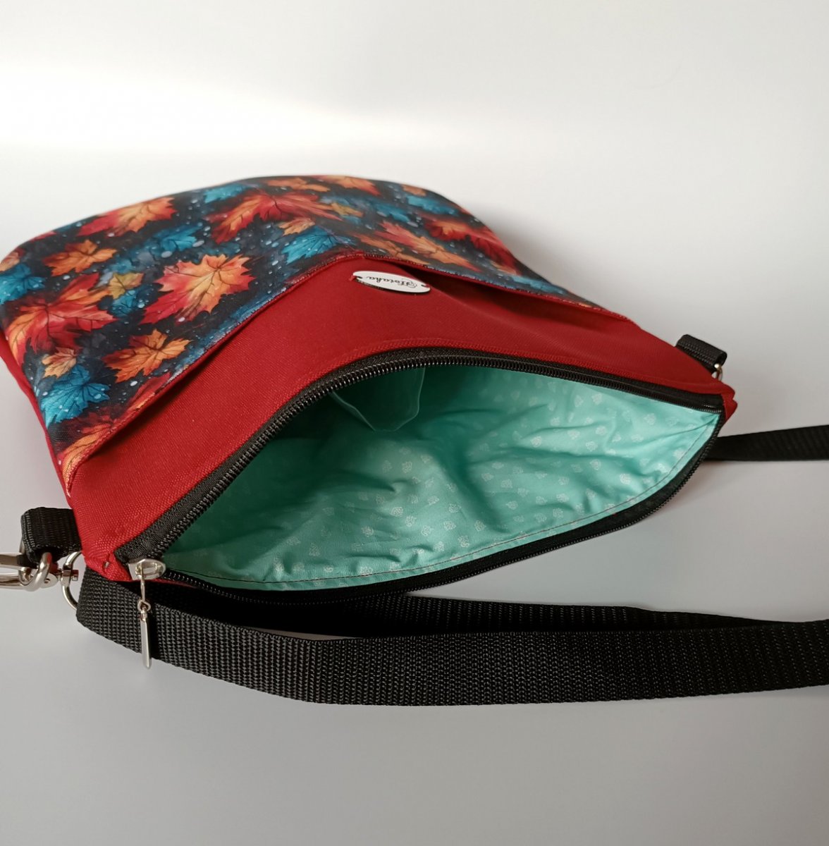Uvnitř kabelky jsou 2 nakládané kapsy, bavlněná podšívka.