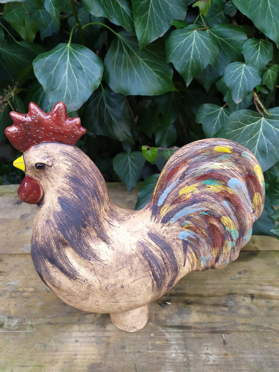 Keramický kohout z šamotové hlíny,vel.28 cm.Je možné ho nasadit na násadu nebo tyč a bude vám dělat ozdobu na zahradě.