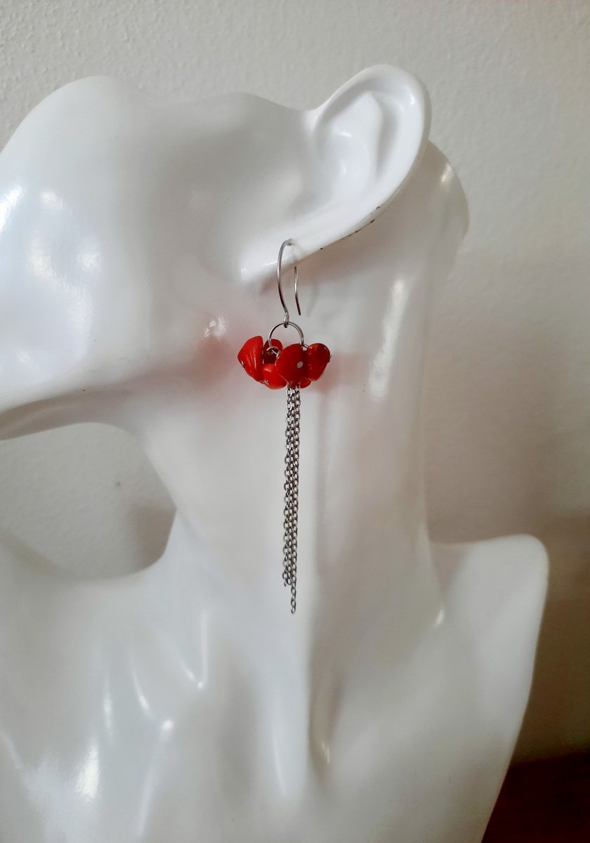 Elegantní náušnice vyrobené z chirurgické oceli ozdobené červeným mořským korálem.