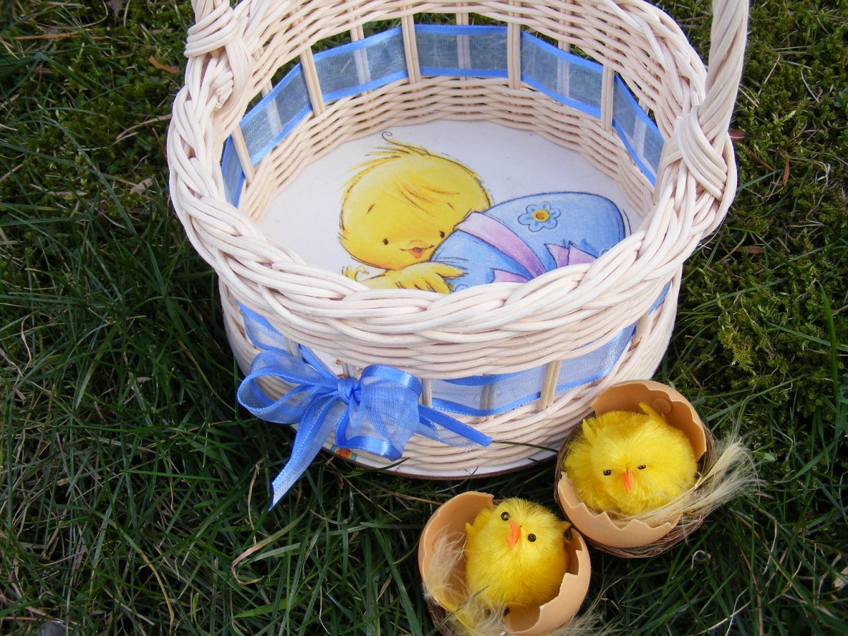 Košíček pletený z přírodního pedigu,dýnko upraveno decoupage technikou.