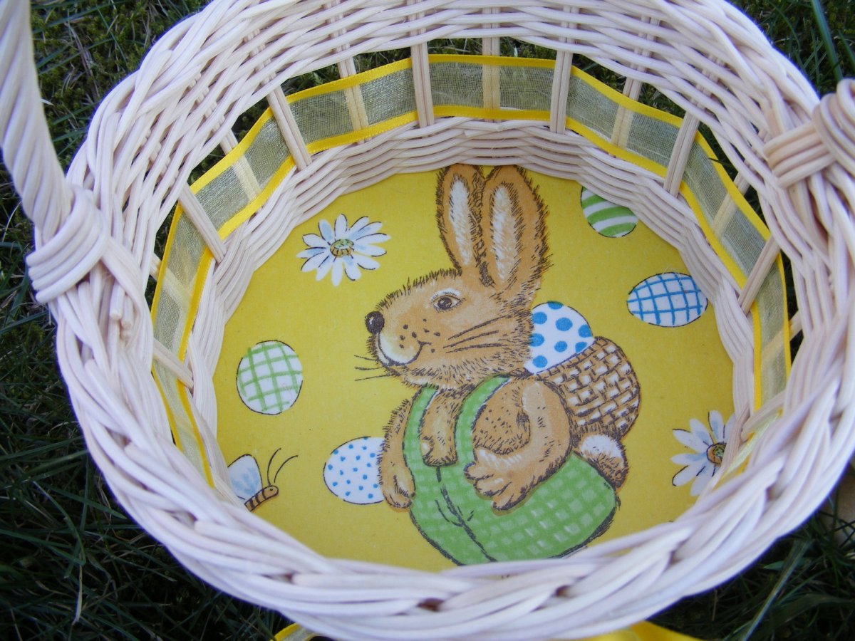 Průměr košíčku 17 cm,výška asi 22 cm.Košíček pletený z přírodního pedigu,dýnko upraveno decoupage technikou.