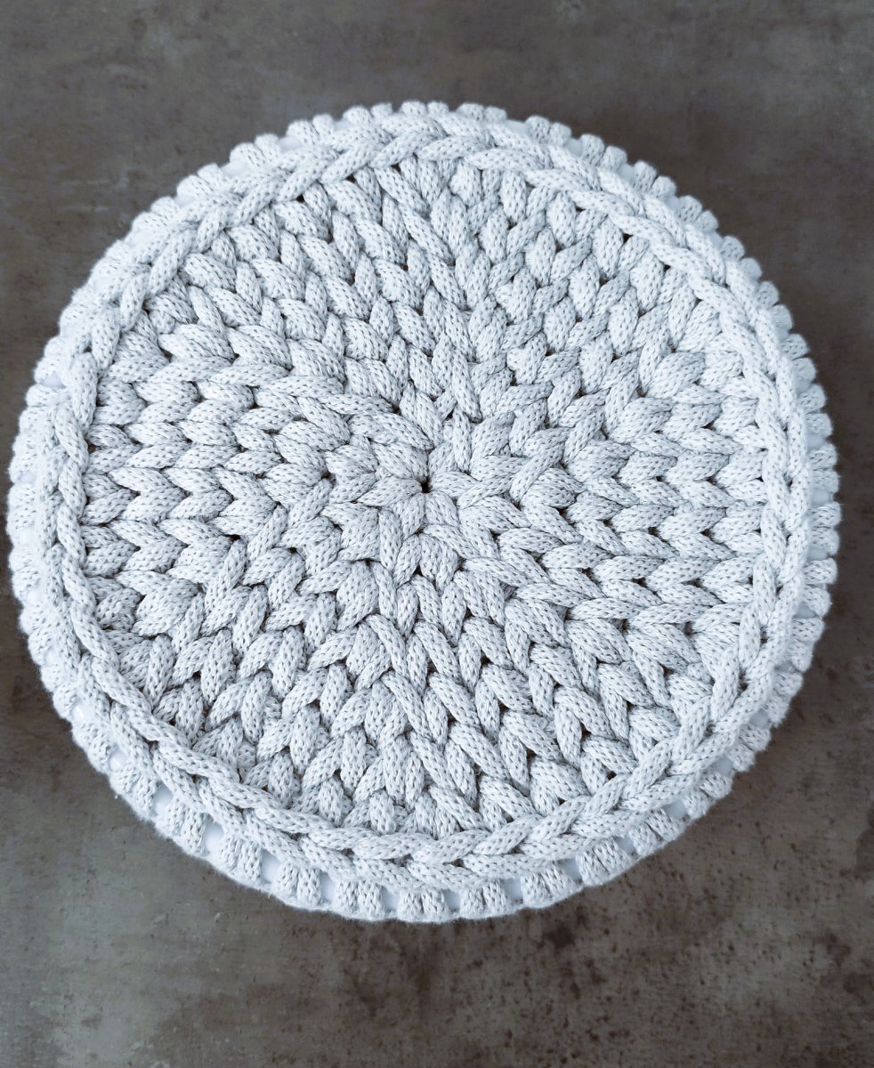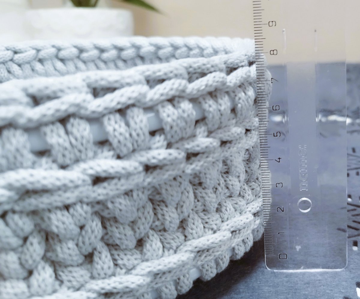 Košík ručně uháčkovaný z pevné bavlněné příze silné 5 mm.
