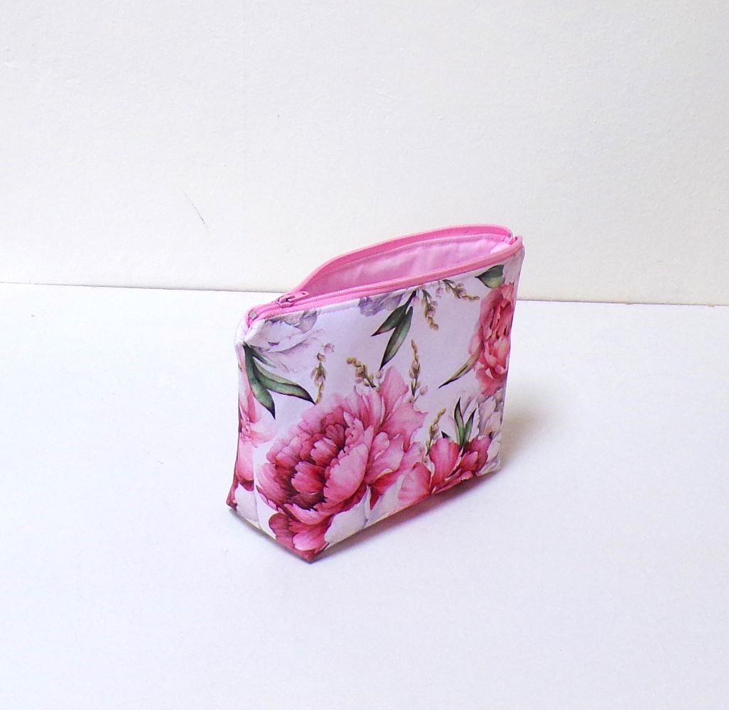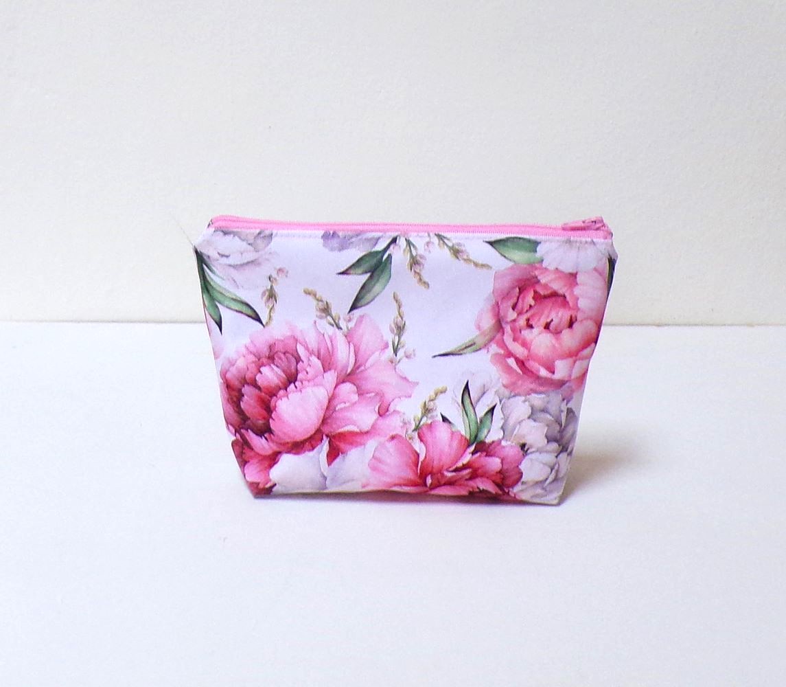 Praktická taštička na kosmetiku nebo jiné drobnosti. Šitá z nepromokavé kočárkoviny, vyztužená, podšívka z bavlněné látky, rozšířené dno, zapínání na zip.