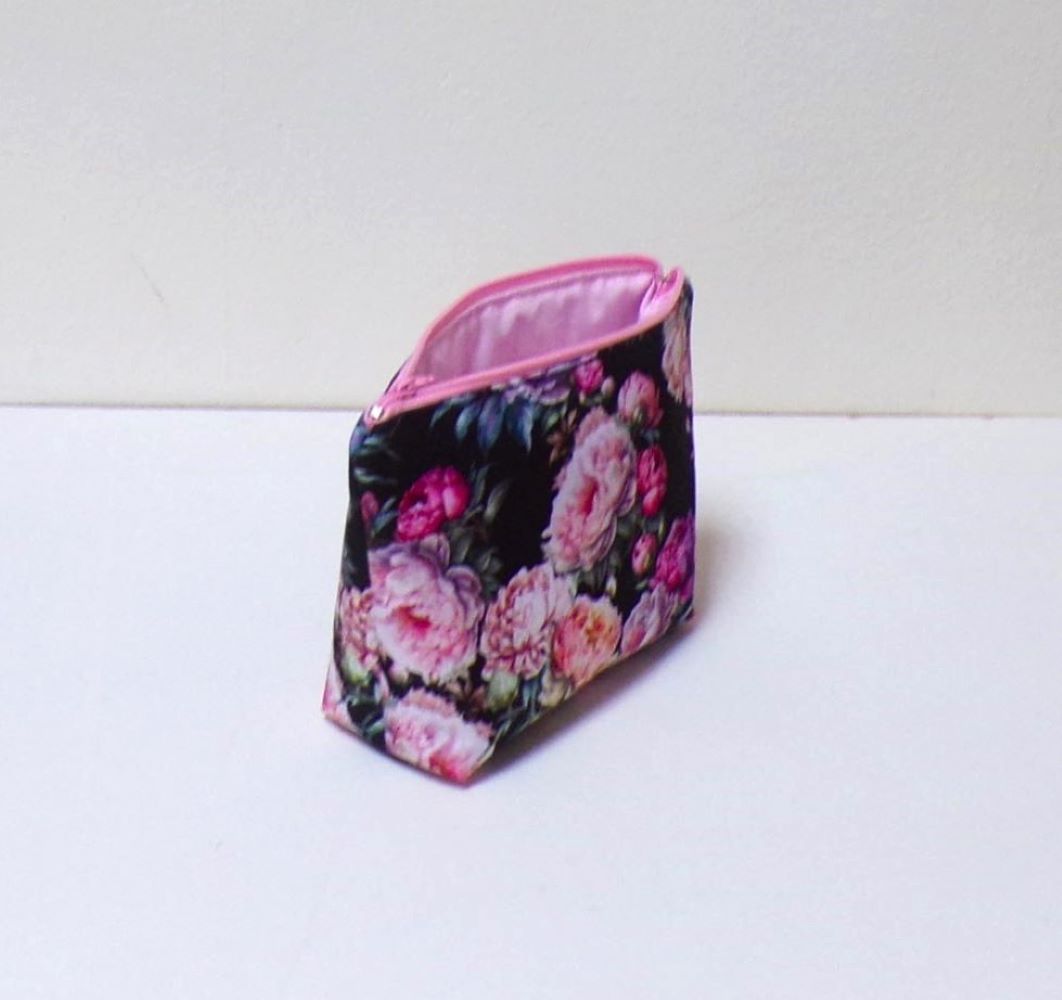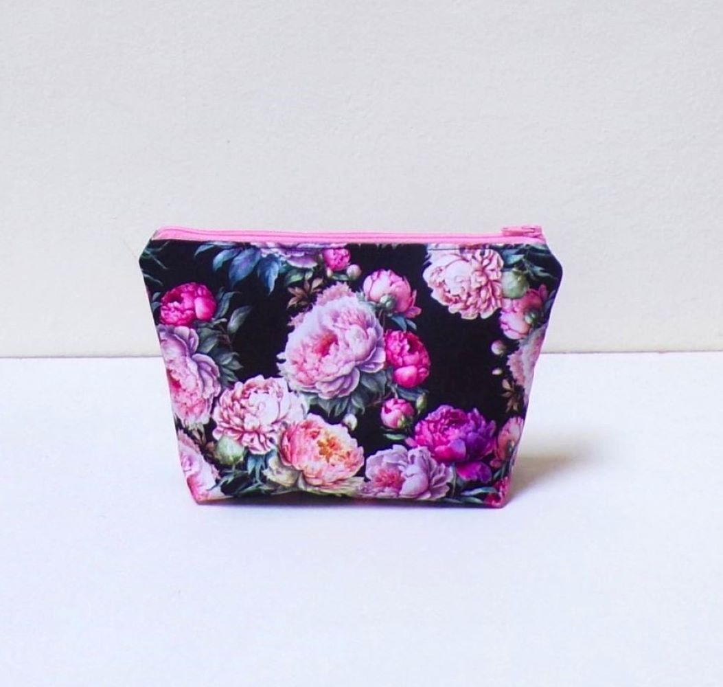 Kosmetická taštička - černá s pivoňkami s pivoňkami