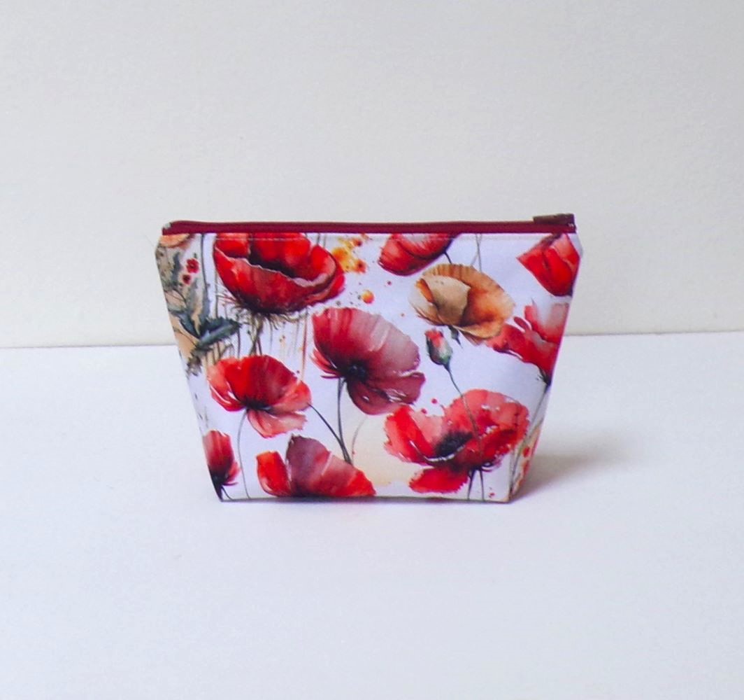 Praktická taštička na kosmetiku nebo jiné drobnosti. Šitá z nepromokavé kočárkoviny, vyztužená, podšívka z bavlněné látky, rozšířené dno, zapínání na zip.