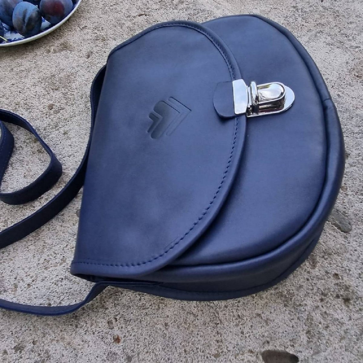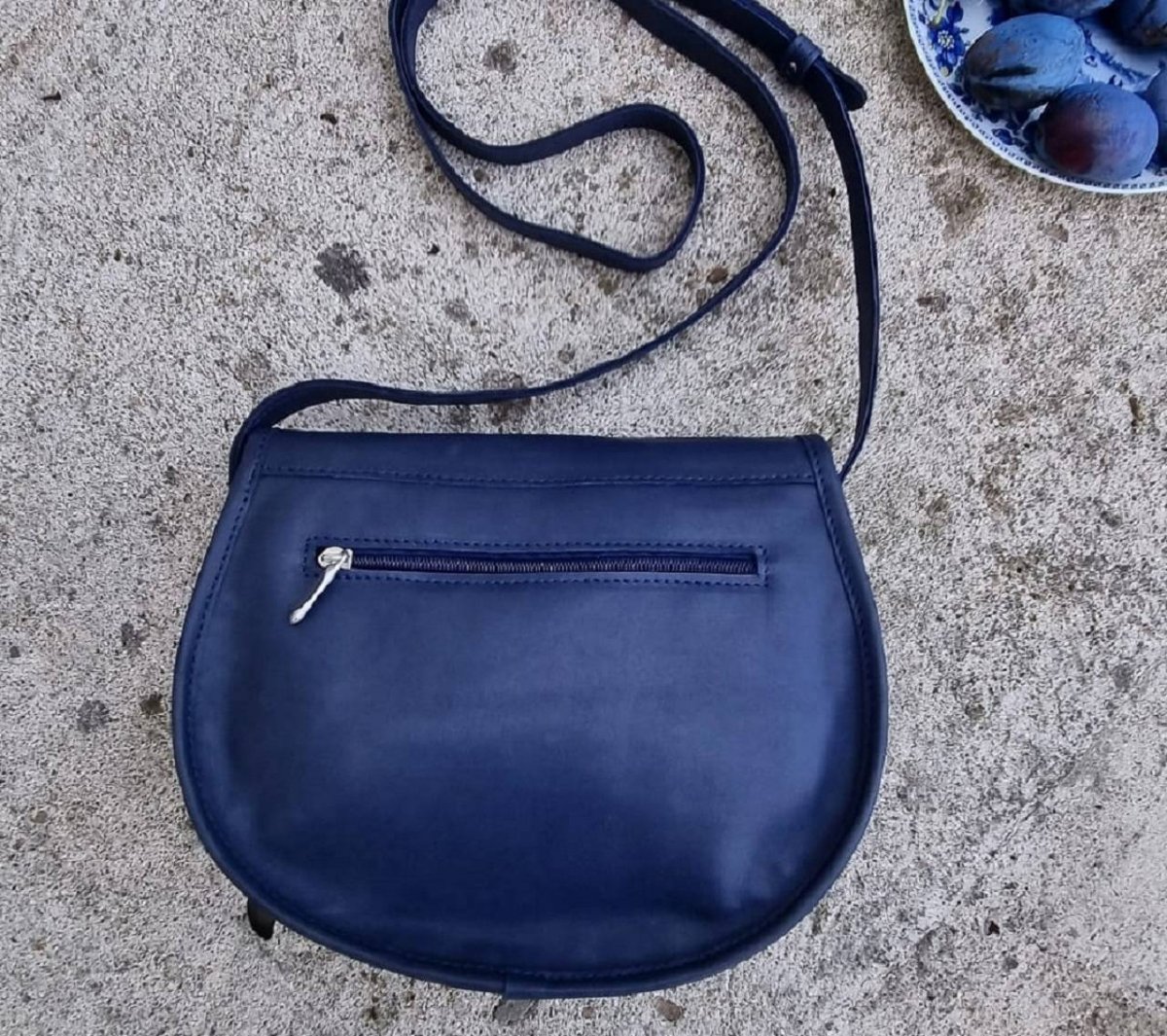 Je vyrobená z tmavě modré hovězí kůže. Kvalita použité kůže z ní dělá nákup na mnoho let. Kabelka má jednoduchý a elegantní design, který se hodí ke všem příležitostem. Uvnitř je prostor pro osobní věci, jako jsou mobilní telefon, peněženka a klíče.
