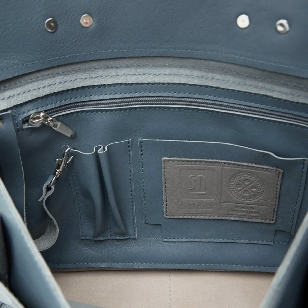 Vnitřní část: kapsa na zip, kapsa na mobil, poutko na klíče, poutka na pera