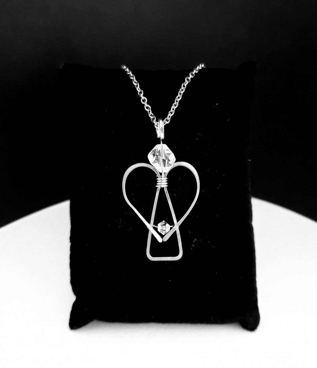 Přívěšek je ručně tepaný z chirurgické oceli ozdobený broušeným křišťálem a maličkým kamínkem Swarovski.