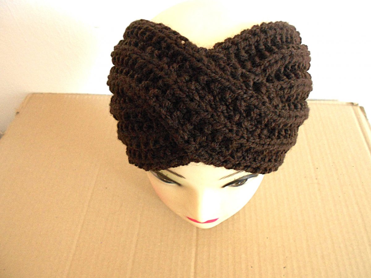Ručně pletená, teplá, hnědá křížená čelenka 30% vlna, 70% akryl, velmi pružný vzor. Obvod hlavy 55-60 cm, šířka 11,5 cm. Doporučuji jemné praní a sušit volně položené.