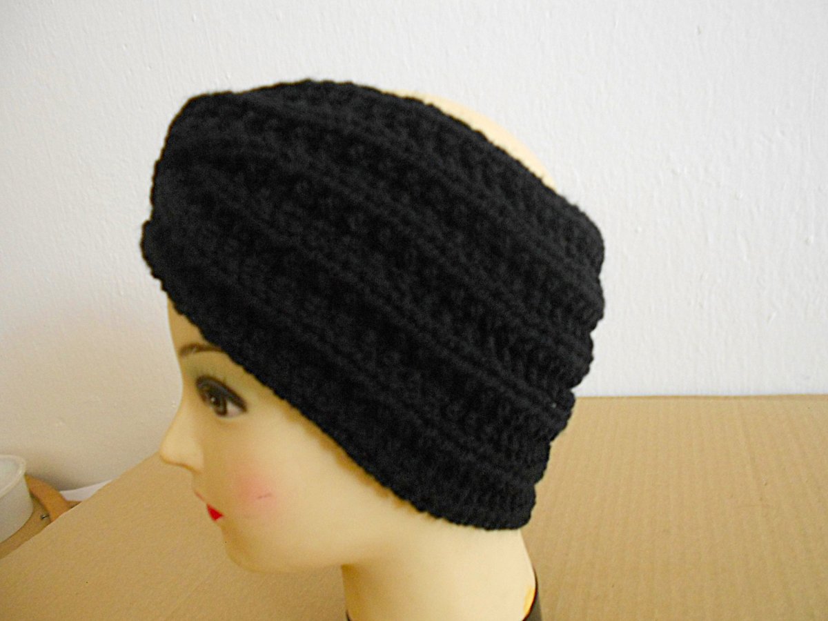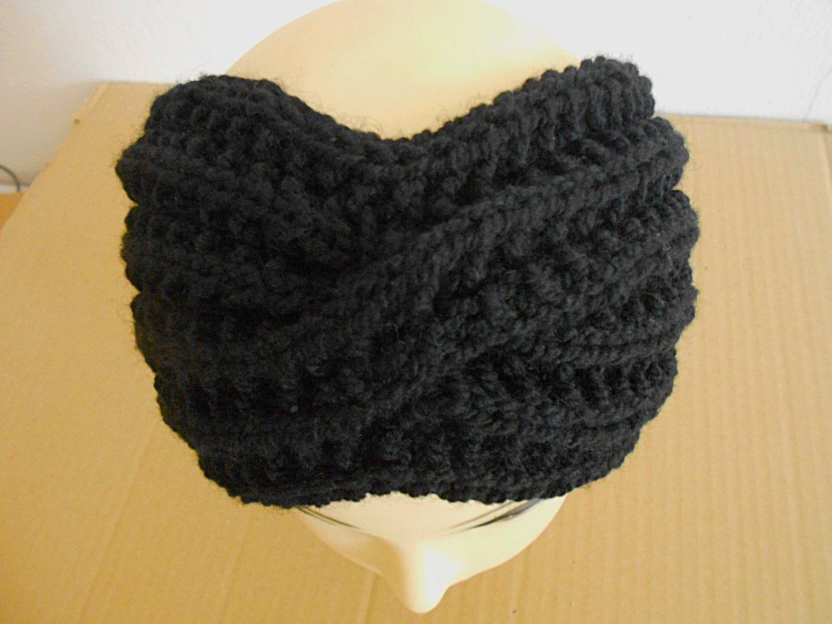Ručně pletená, teplá, černá, křížená čelenka 30% vlna, 70% akryl, velmi pružný vzor. Obvod hlavy 55-60 cm, šířka 11,5 cm. Doporučuji jemné praní a sušit volně položené.