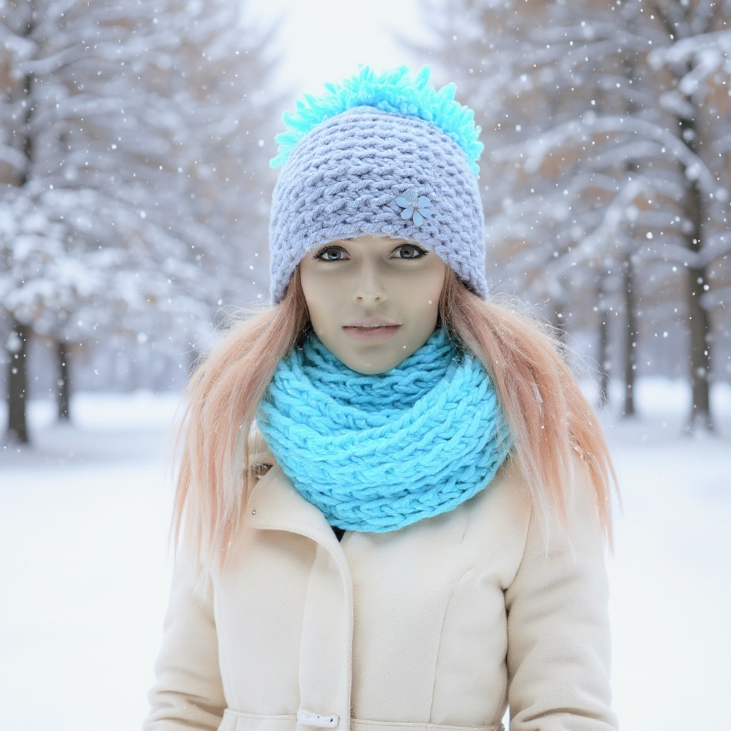 HÁČKOVANÁ SOUPRAVA KULÍŠKU, NÁKRČNÍKU A BEZPRSTOVÝCH RUKAVIČEK ZE SILNÉ ABSOLUTNĚ HEBOUČKÉ AKRYLOVÉ PŘÍZE