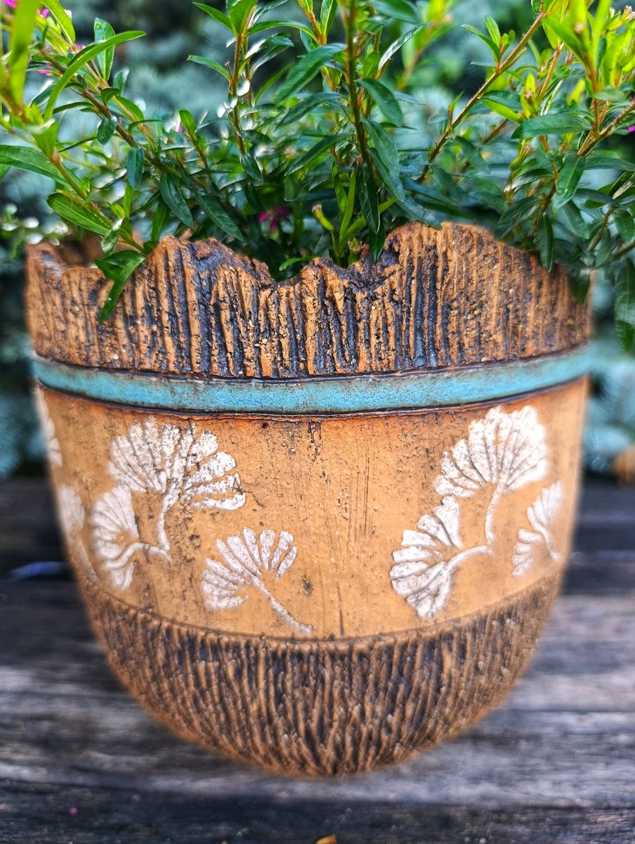 Keramický květináč výška cca 17 cm a průměr 18 cm.