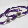Náramek je vyroben z fialové šňůrky a kovového smaltovaného mezidílu - Kytička.