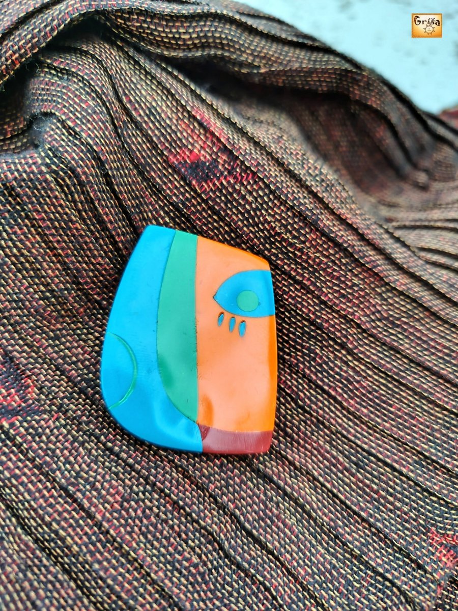 Rozměry autorské leštěné brože z polymerové hmoty jsou cca 35x45 mm.