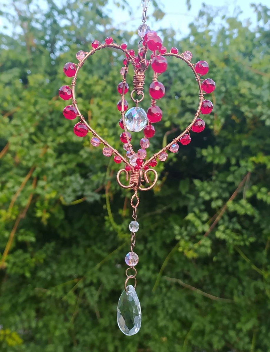 Lapač slunce můžete zavěsit všude tam, kde svítí slunce. Slunce v něm bude světélkovat a přenášet se dál do místnosti. Je vyroben z měděného drátku a skleněných broušených korálků. Dekorace má 17 cm + 15 cm řetízek.