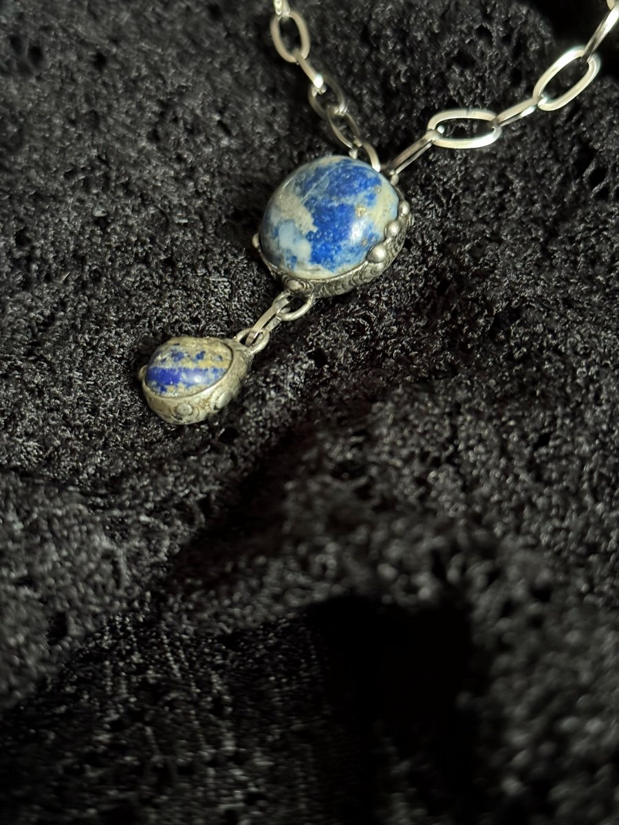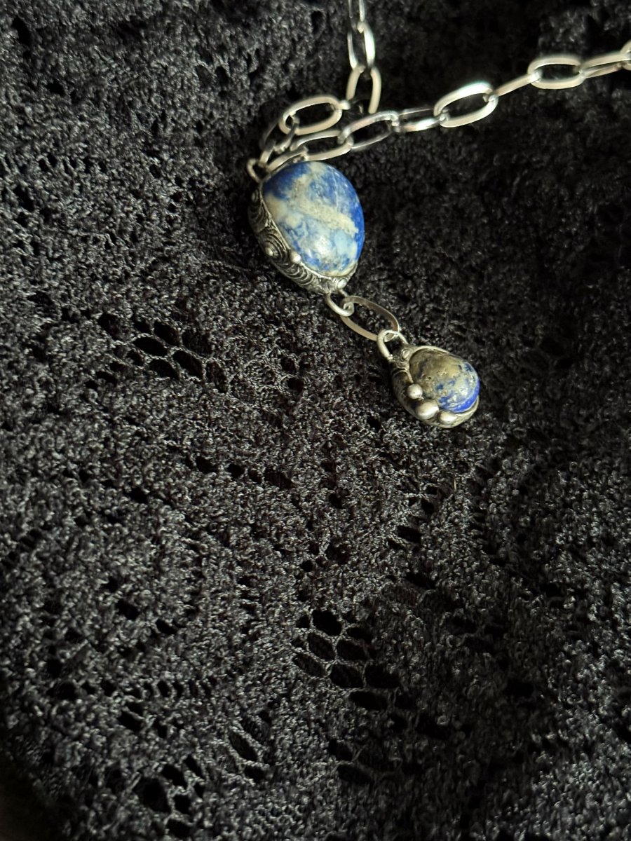Náhrdelník ze dvou kamenů LAPIS LAZULI na řetízku z chirurgické oceli.