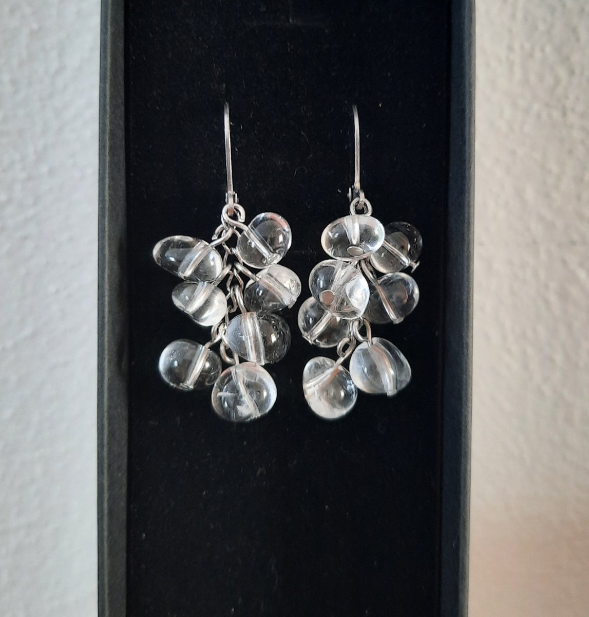 Elegantní náušnice - křišťálové kapky rosy - jsou vyrobeny z leštěné chirurgické oceli ozdobené průzračným horským křištálem nejvyšší kvality AA