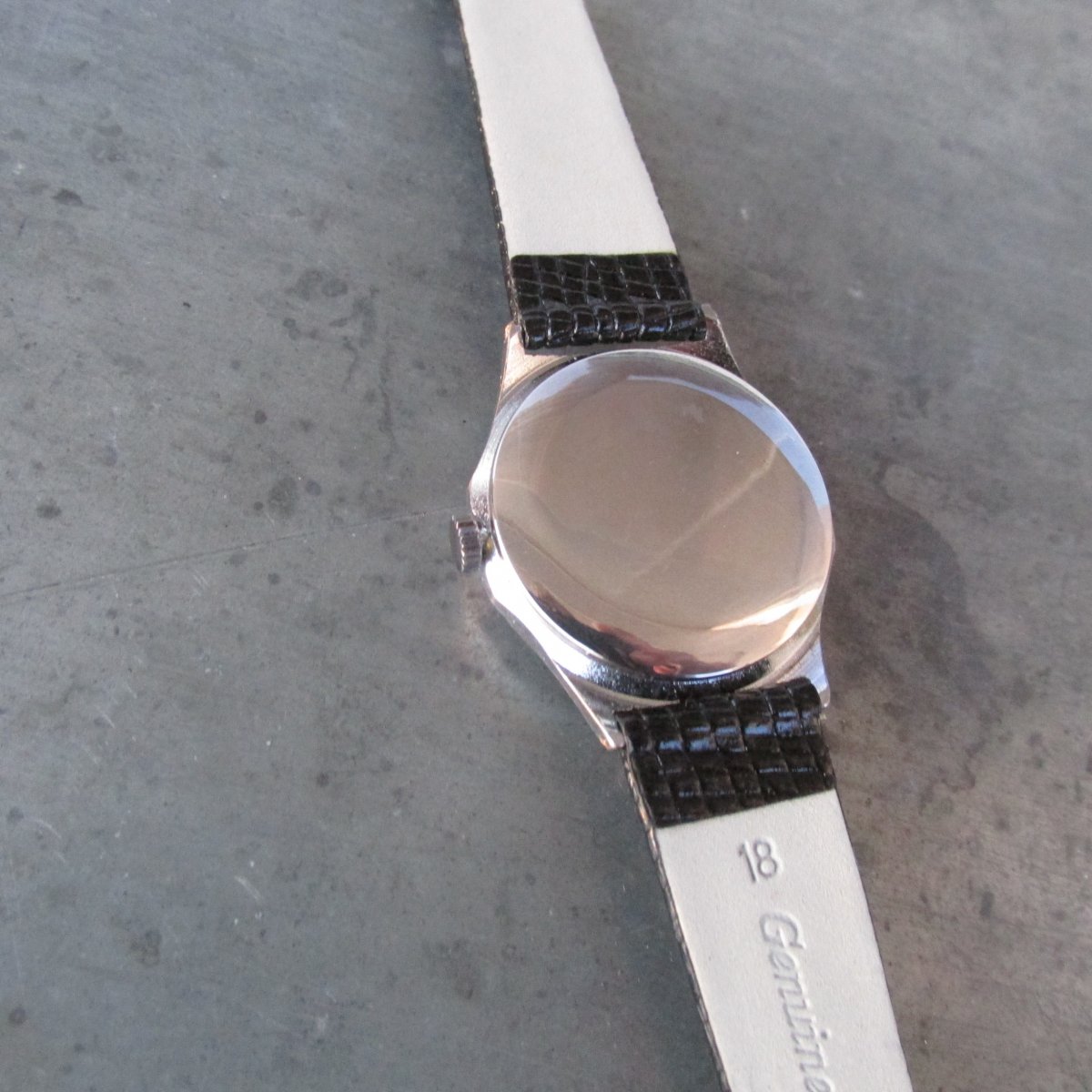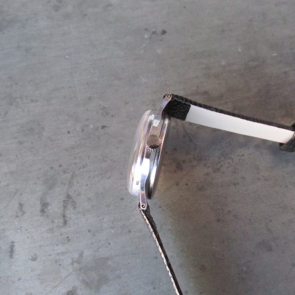 Chromované pouzdro, nový elegantní kožený řemínek v černé barvě.