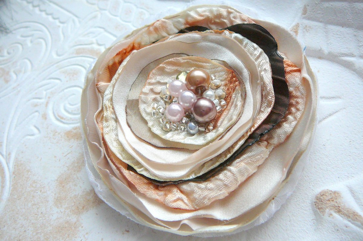 Jemná brož vytvořená z šifonových, organzových a saténových látek.