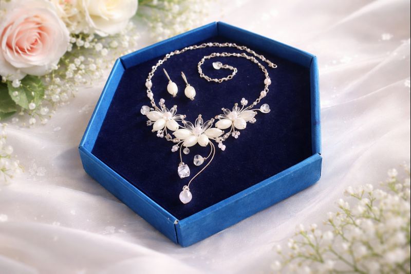 Díky preciznímu ručnímu zpracování, kvalitním materiálům a nadčasovému designu působí tento set opravdu výjimečně. Perfektní volba pro svatbu, ples, gala večer nebo slavnostní focení.