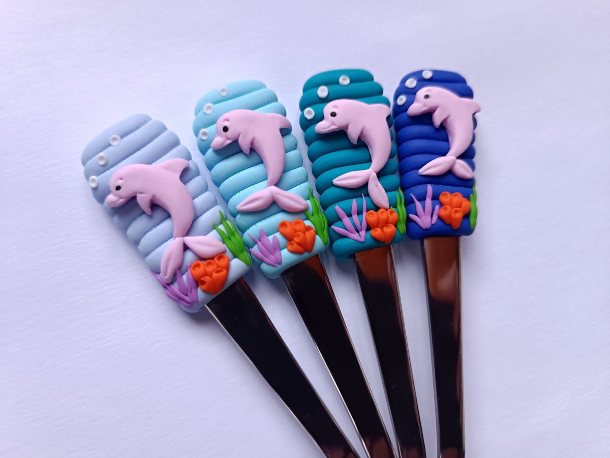 Nerez lžička 13,5 cm ozdobená fimo motivem. Možno vyrobit v jiné barevné kombinaci.