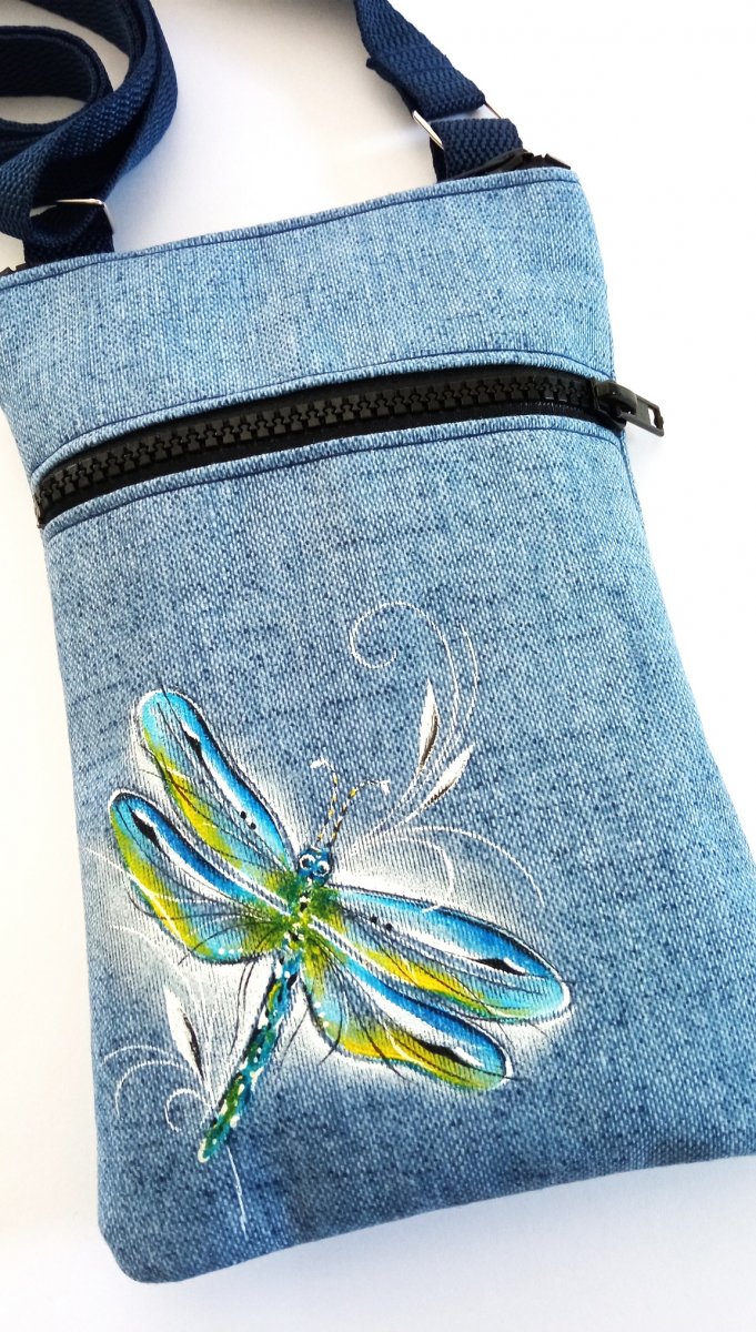 vážka je ručně malovaná barvou na textil a zafixovaná teplem