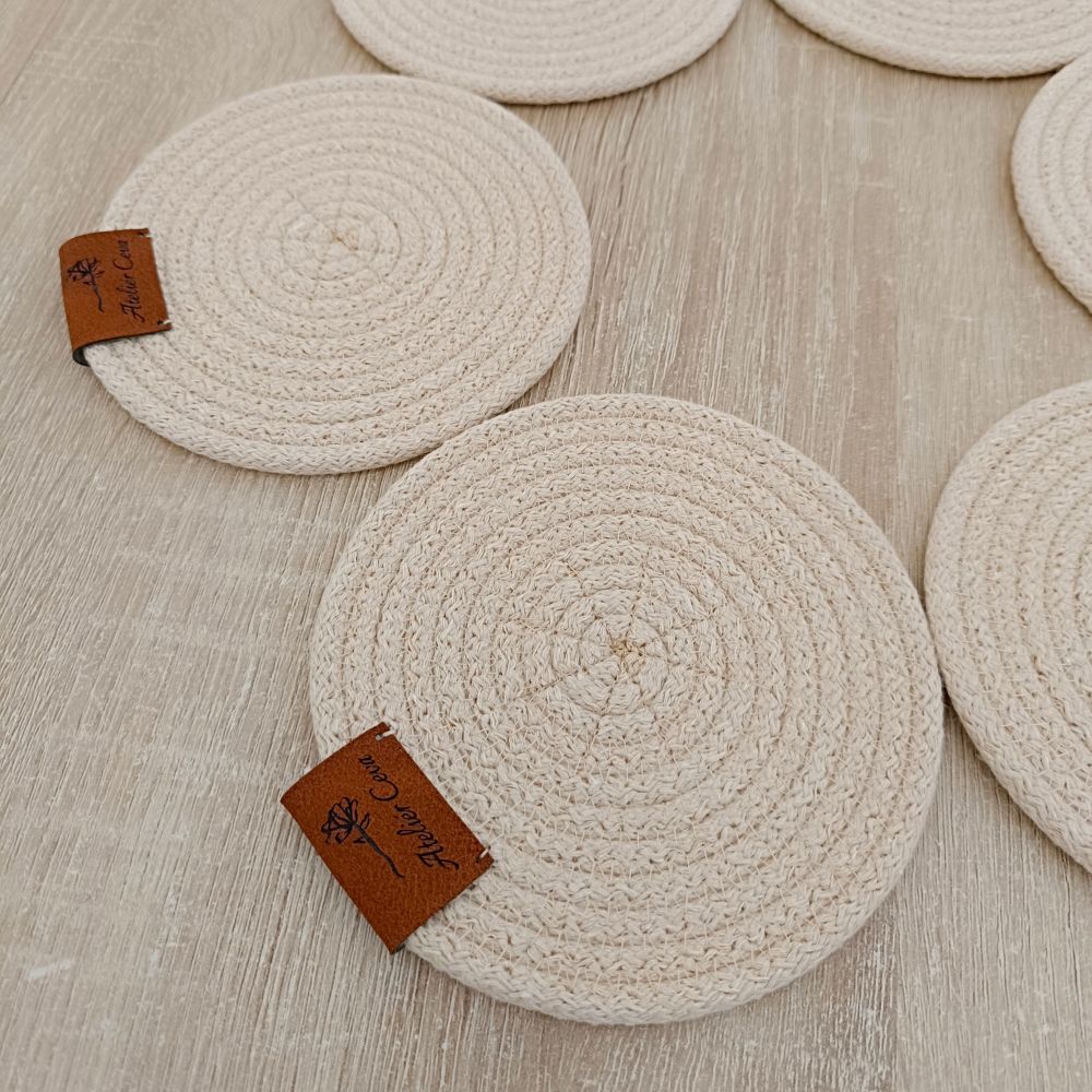 Prostírání je ušito z pevných šňůr, které mají vysokou pevnost a schopnost držet tvar i při častém používání. Každý kus je originál, protože je šitý ručně s důrazem na detail a kvalitu zpracování.