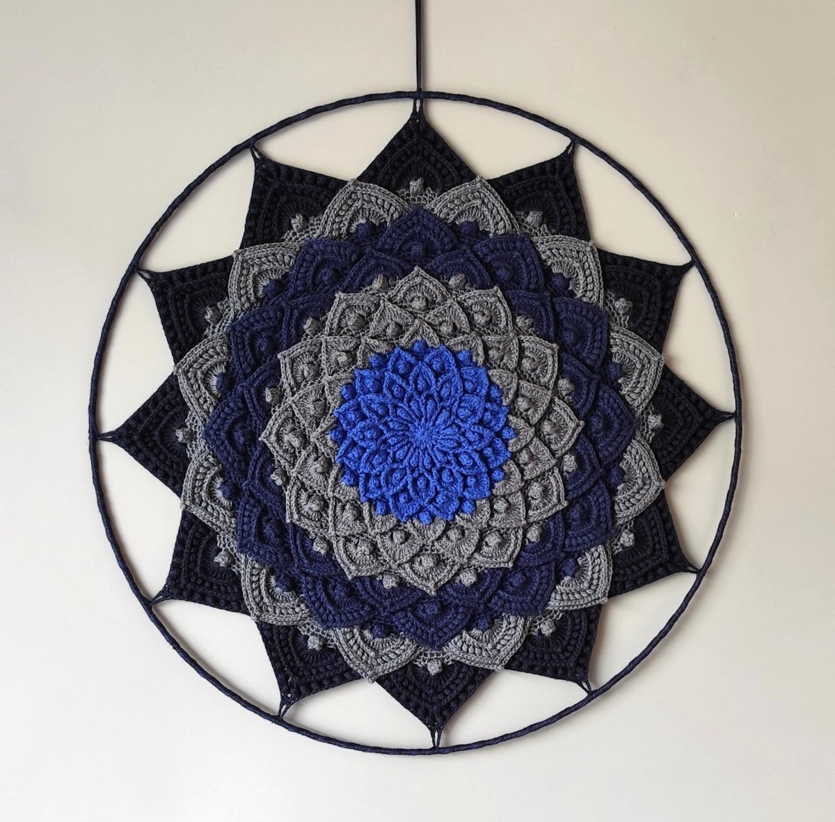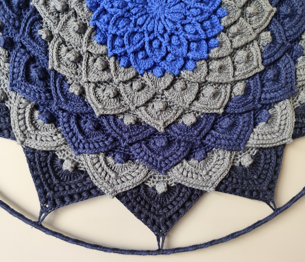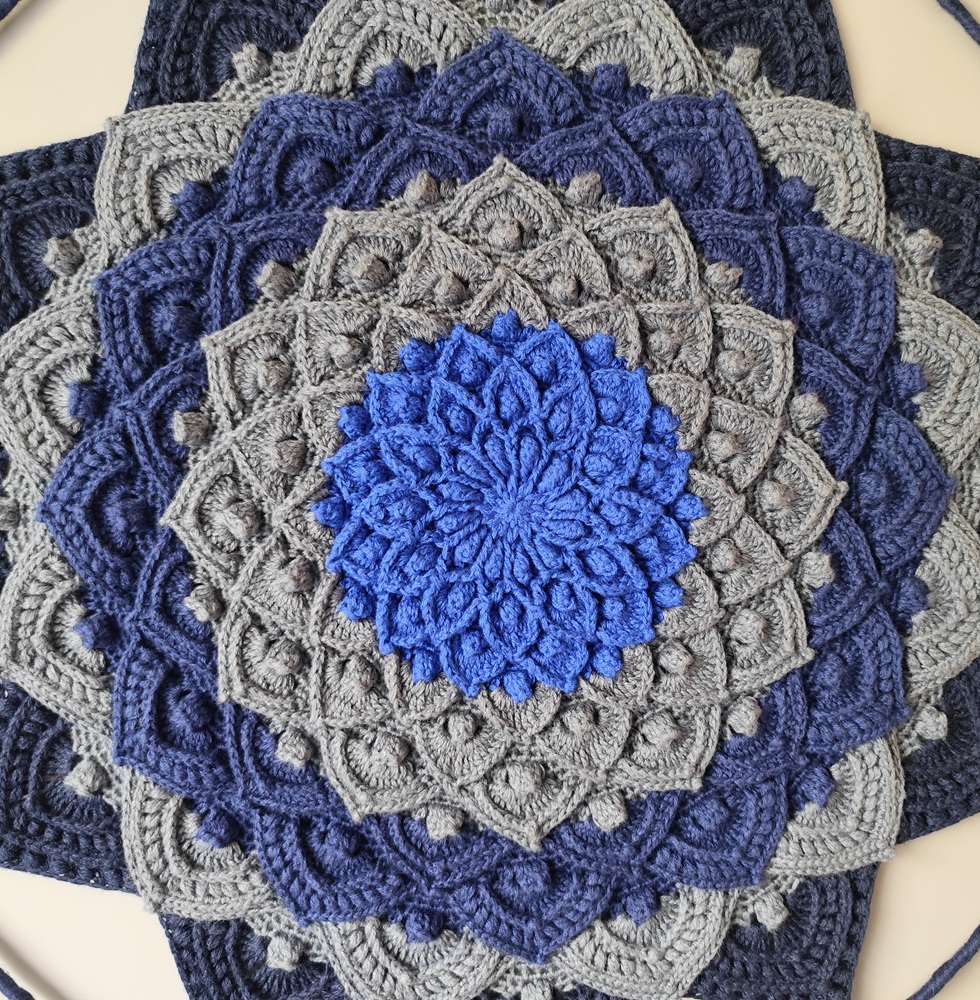 Háčkovaná mandala modro šedá.