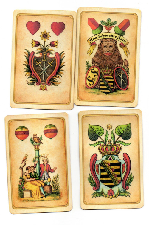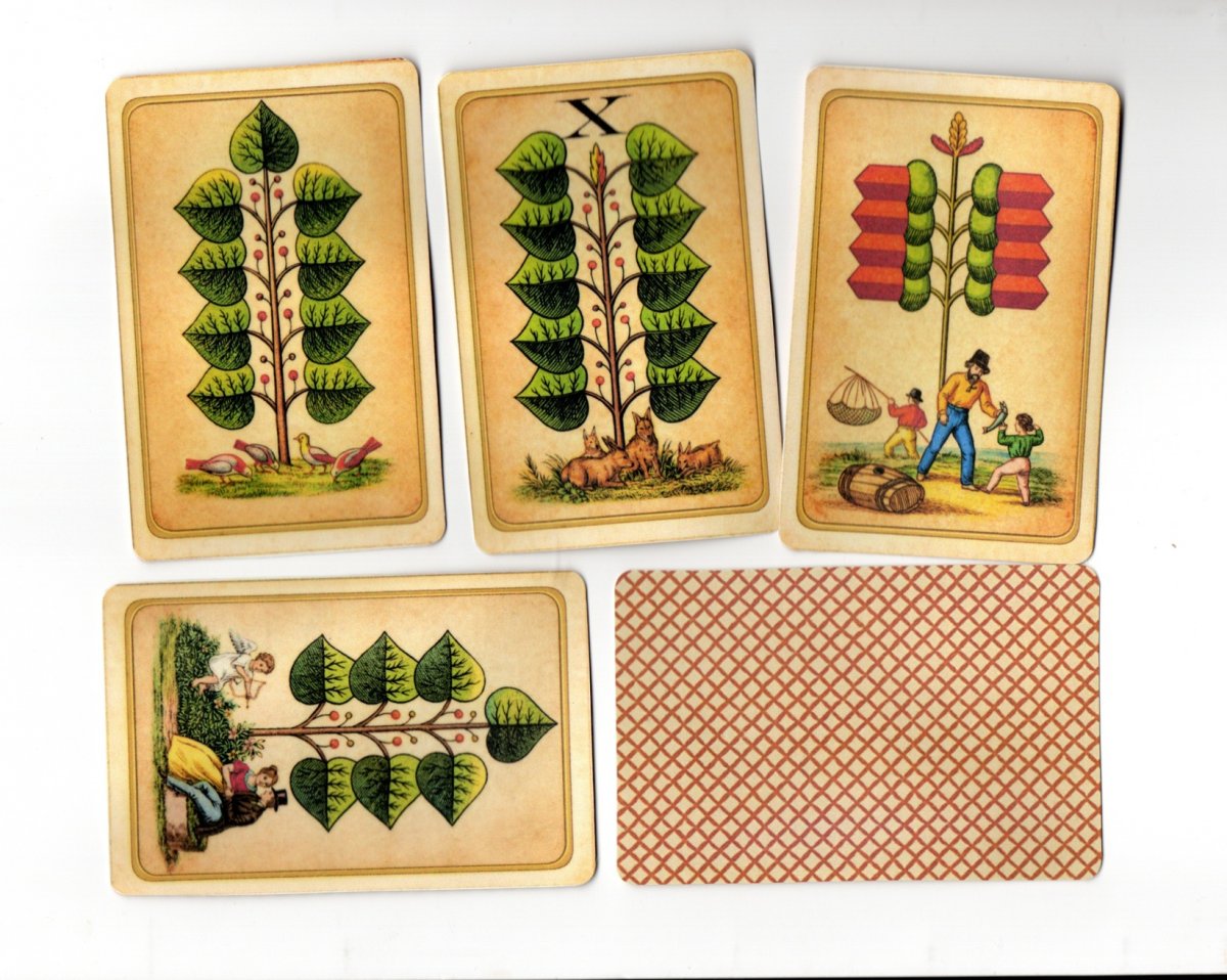 reprint mariášové karty také jako vykládací 32ks karet upravené AI vydáváno Norimberg vel: 10,5x6,8cm ruční práce tisk na papír 250g, přelakováno nezávadným lakem pro pevnost a lesk .