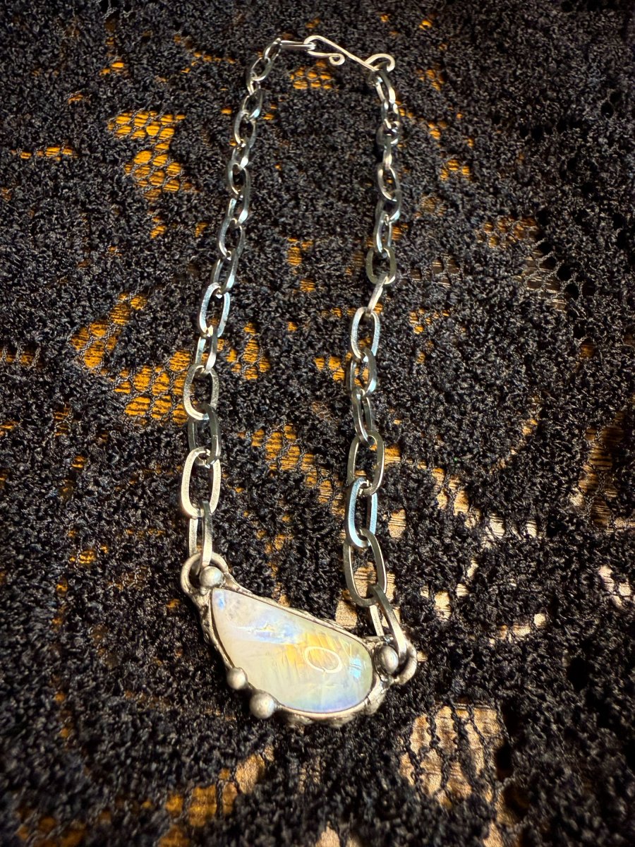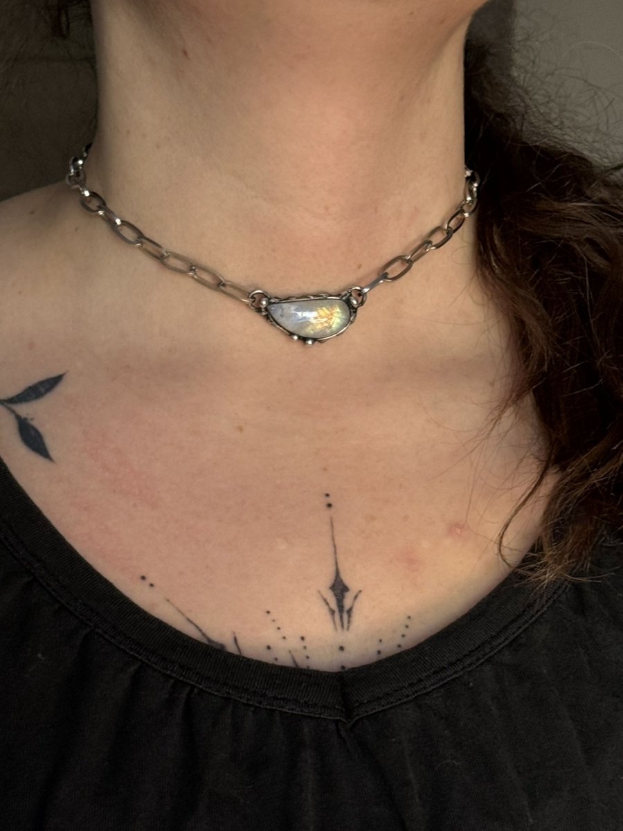 Choker z MĚSÍČNÉHO KAMENE na řetízku z chirurgické oceli.