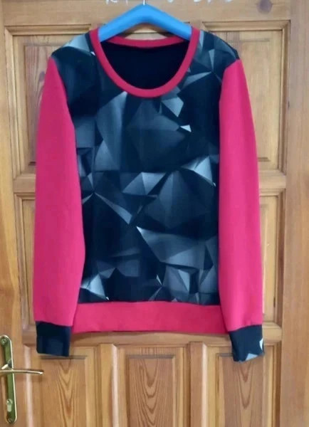 Střih je mírně projmutý, vsazený dlouhý rukáv, v pase do lemu.