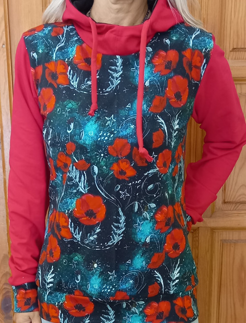 Střih je mírně projmutý, v pase do lemu, kapuce je vypodšívkovaná.