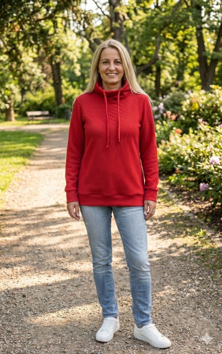 Pohodlí se potkává s promyšleným střihem. Tato mikina je ideální volbou pro ženy, které nechtějí dělat kompromisy mezi komfortem a vzhledem.