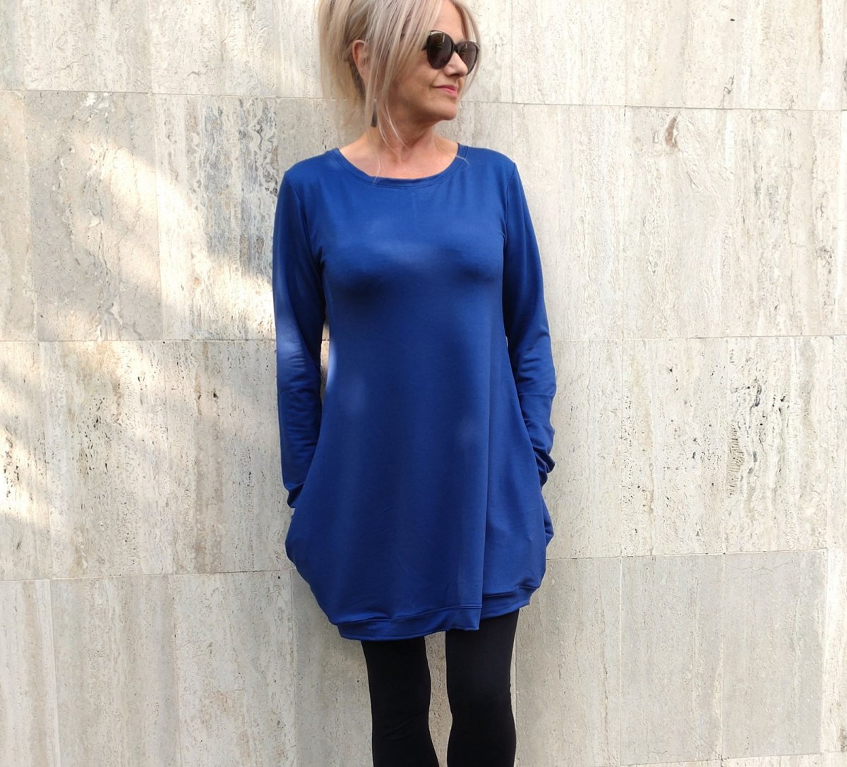 Tunika je vyrobena z tenké elastické teplákoviny ve složení viscóza/polyester/lycra. Příjemný splývavý materiál.