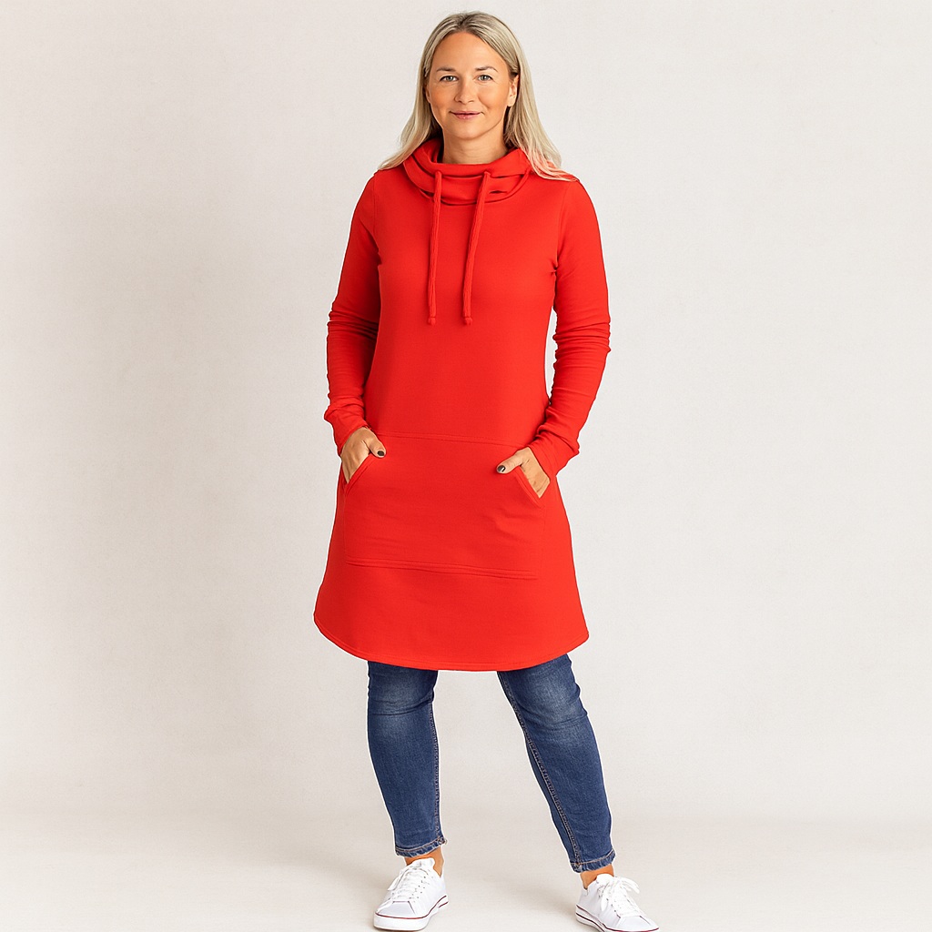 Mikinové šaty jsou ušité z příjemné počesané teplákoviny 95% bavlna, 5% elastan.