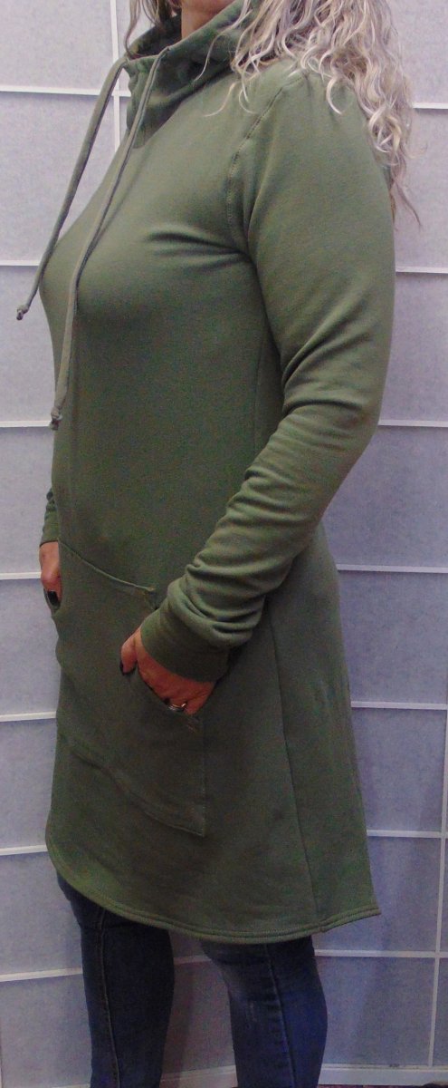 Mikinové šaty jsou ušité z příjemné počesané teplákoviny 95% bavlna, 5% elastan.
