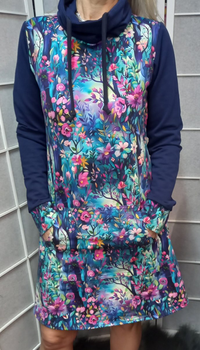 Mikinové šaty jsou ušité z příjemné teplákoviny 95% bavlna, 5% elastan.