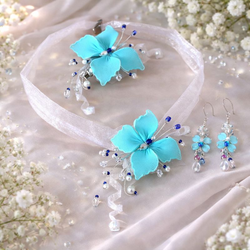 svatební náhrdelník motýlek, motýlkový šperk, svatební ozdoba do vlasů, tyrkysový náhrdelník, ručně vyráběný svatební šperk, svatební set motýl, romantický šperk, ozdoba do vlasů motýlek