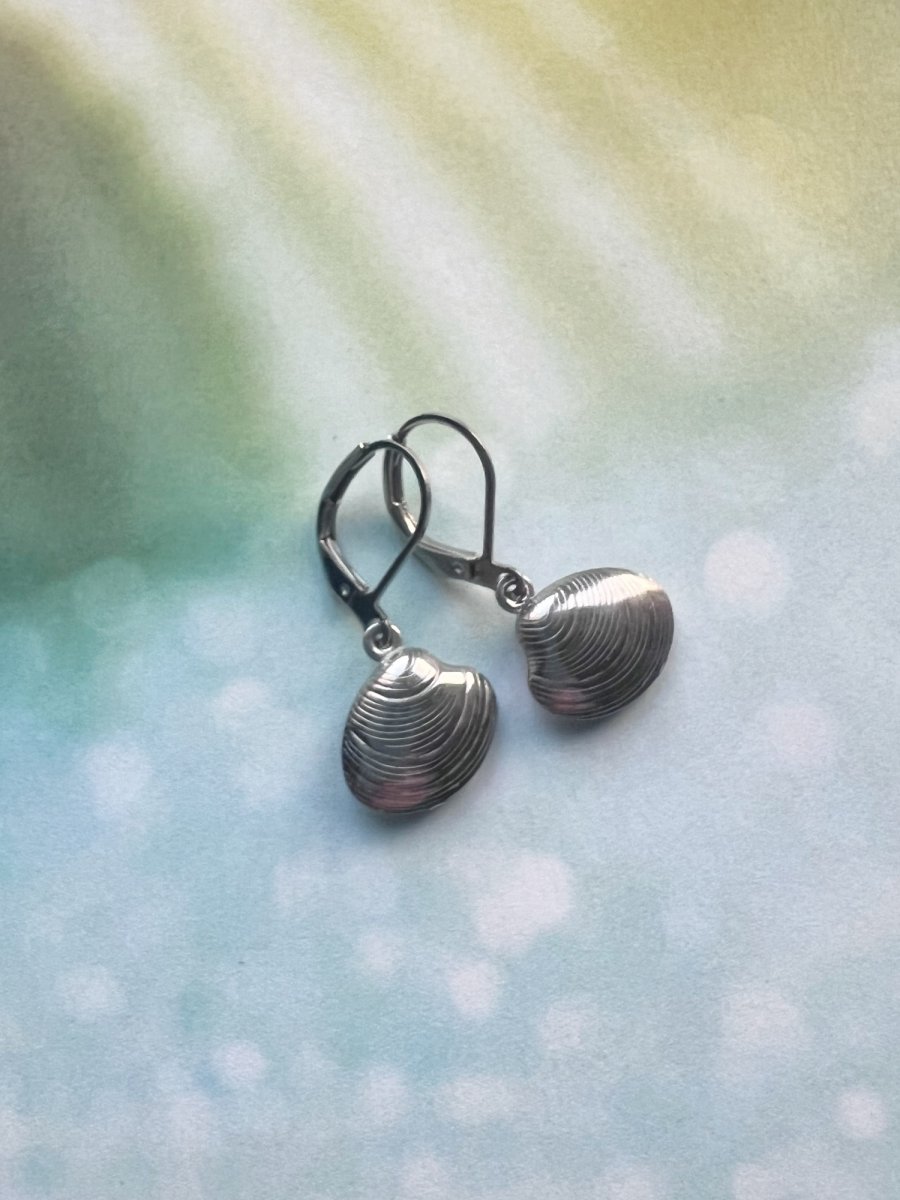 Náušnice s mušličkami cca 1,5 x 1,5 cm, komponenty z nerez oceli - vhodné pro alergiky. Uzavíratelný háček