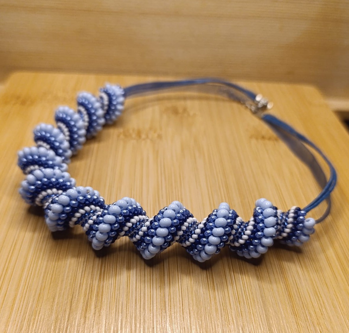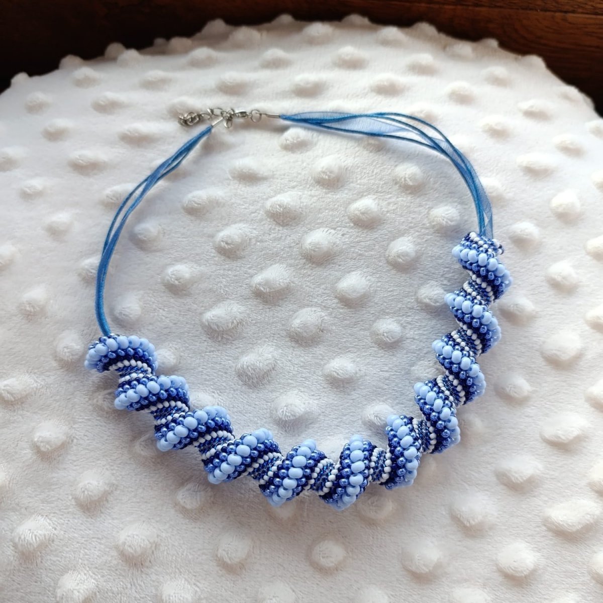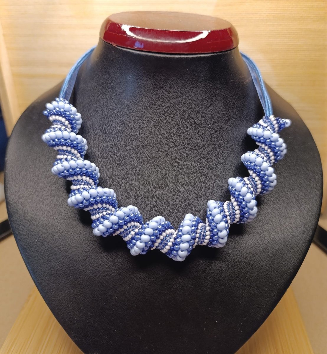 Náhrdelník se spirálou Cellini. Spirála šitá technikou Cellini.