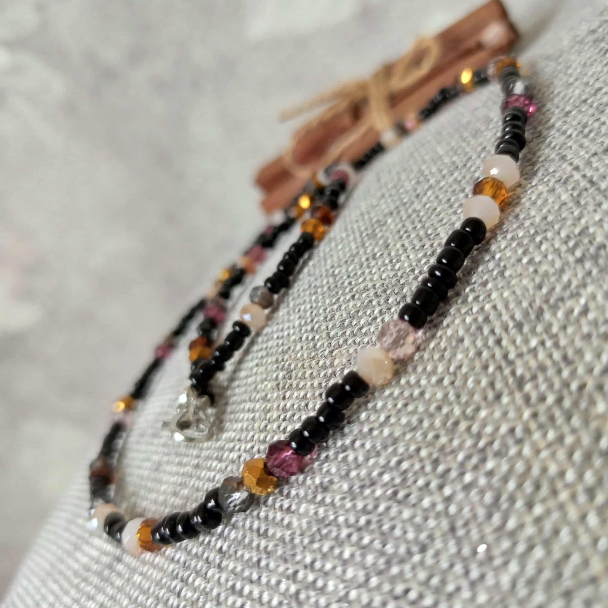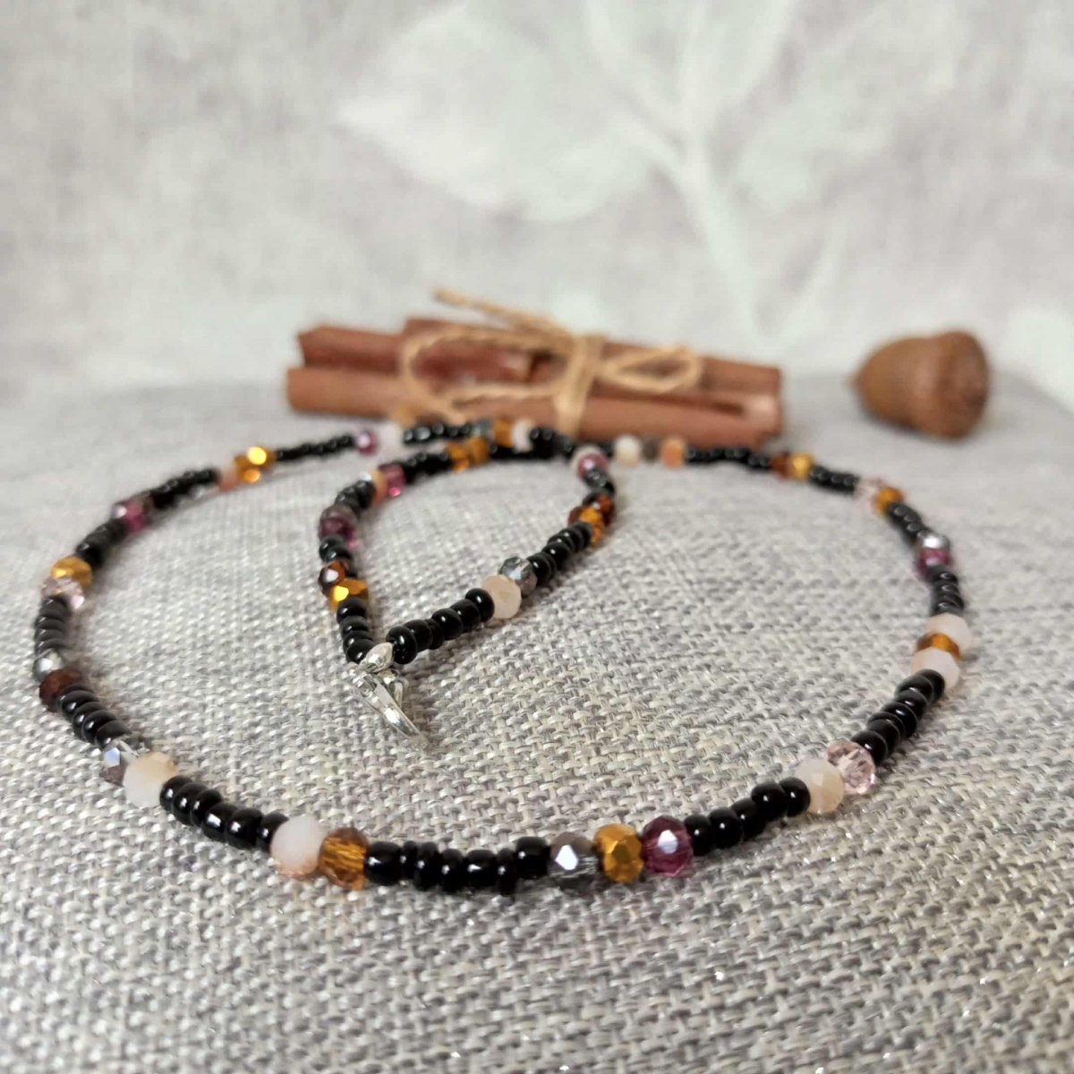 Náhrdelník ze skleněných rokajlových korálků 2mm doplněný skleněnými broušenými korálky 4mm .