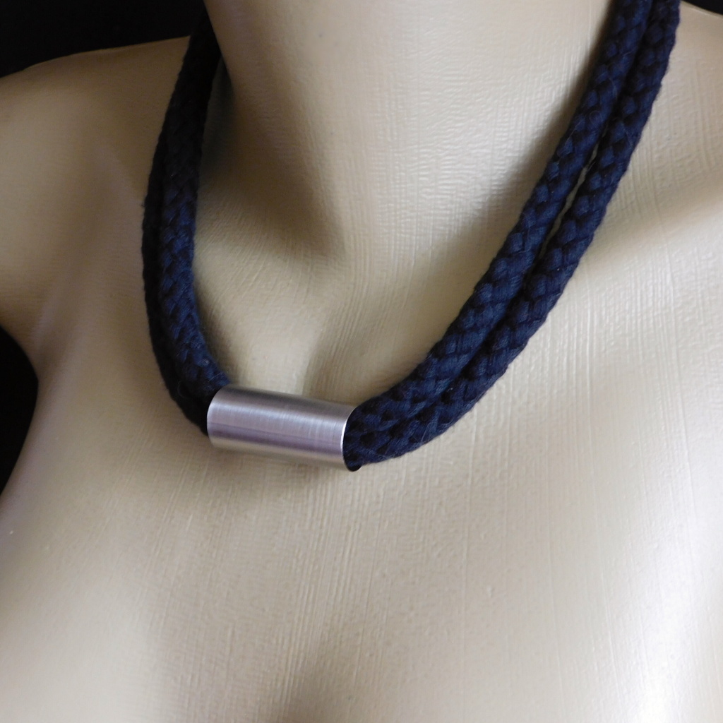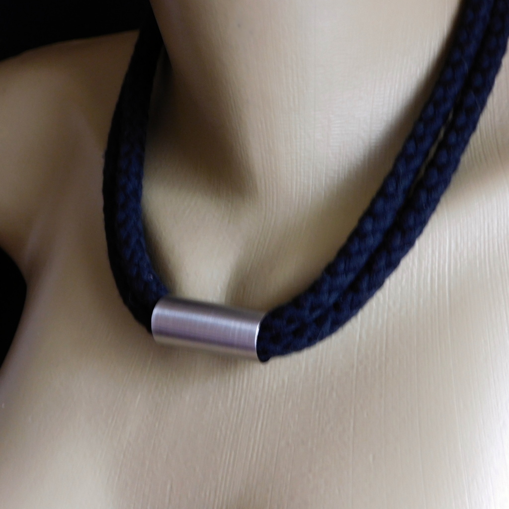 Lanový náhrdelník z dvojitého černého lana a oručně vyrobené,silnější leštěné trubičky.