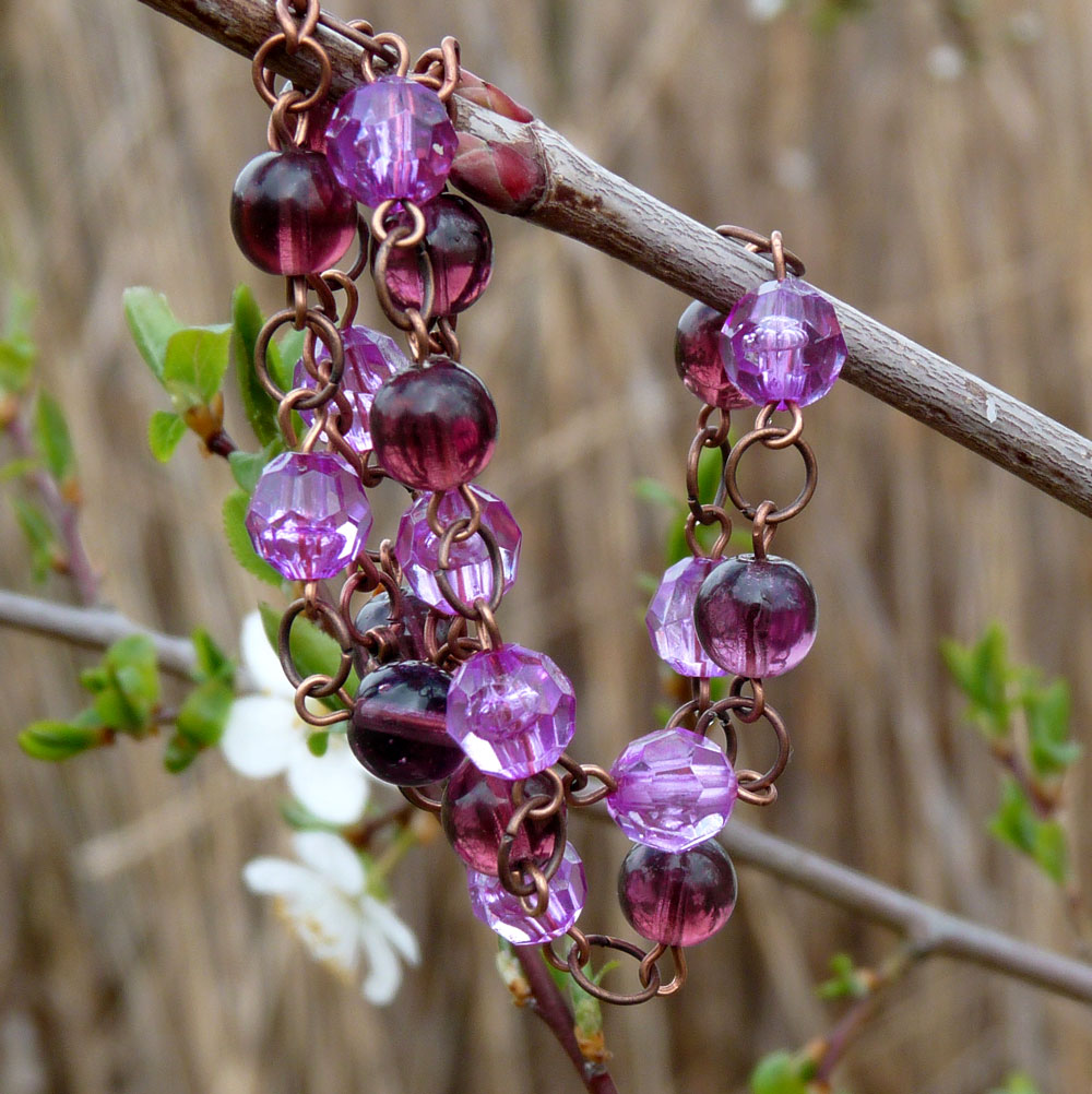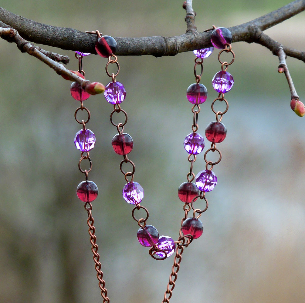 Je tvořen dvěma druhy korálků ve fialové a purpurové barvě a měděnými kroužky.