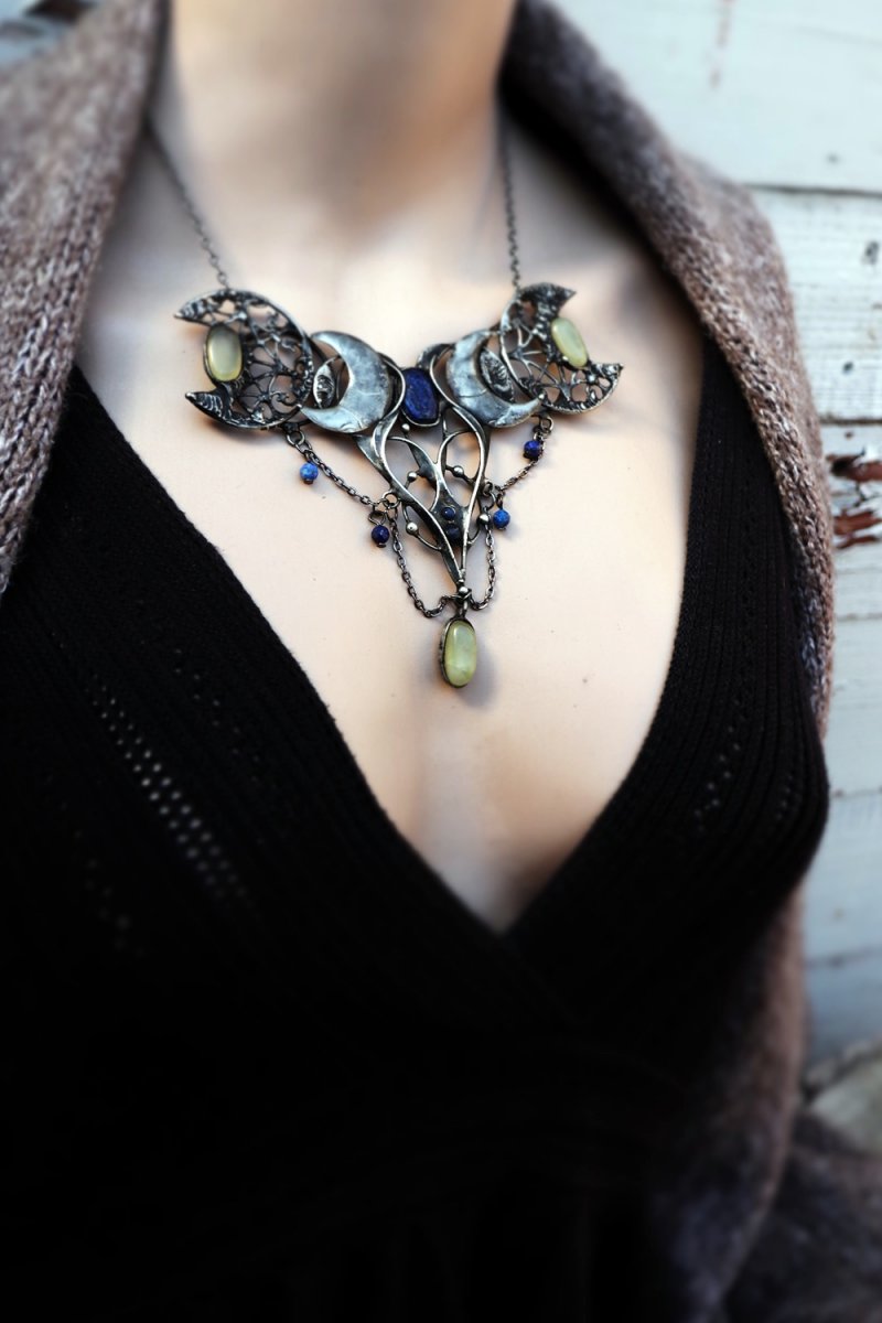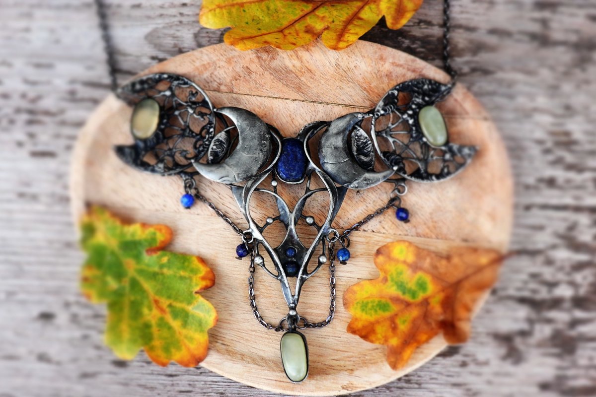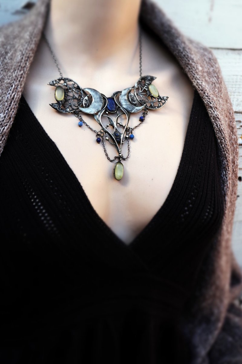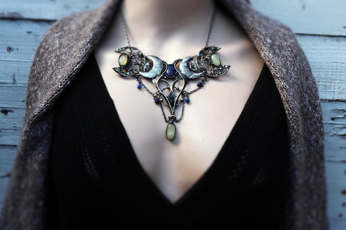 Půlměsíce a bohatě zdobený design připomínají lunární bohyně a jejich moc chránit a vést.
