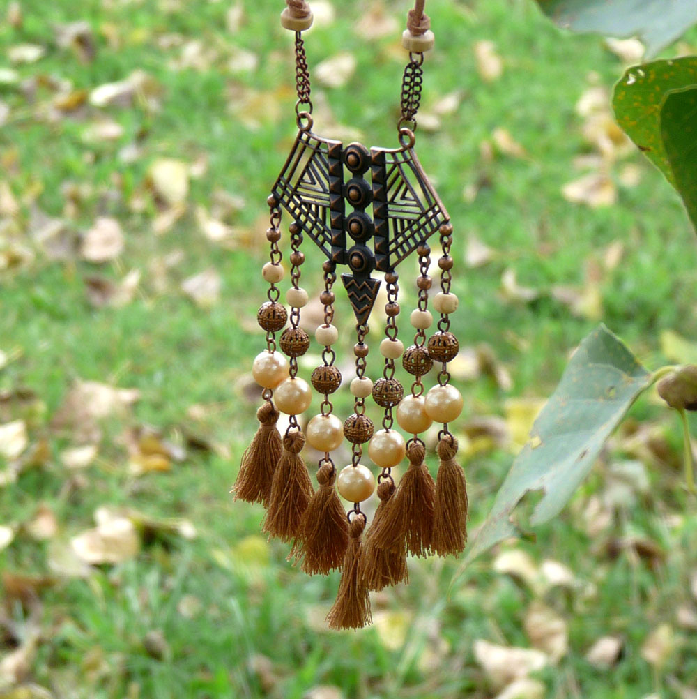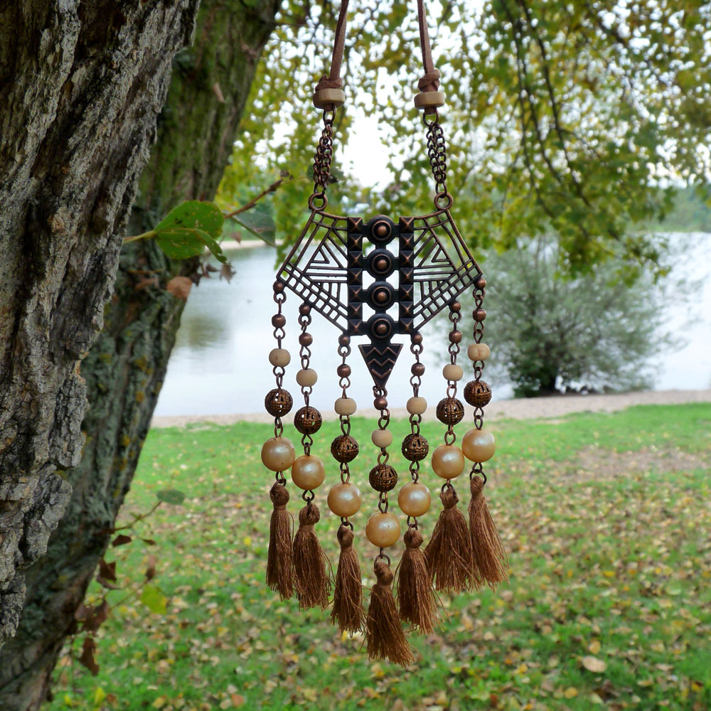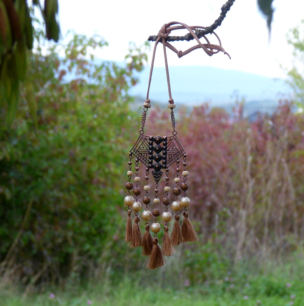 Korálkové závěsy jsou zakončeny hnědými střapci