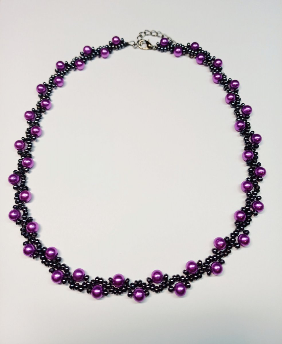 Náhrdelník je šitý z černých korálků Preciosa, doplněny fialovými perličkami 0,5 cm