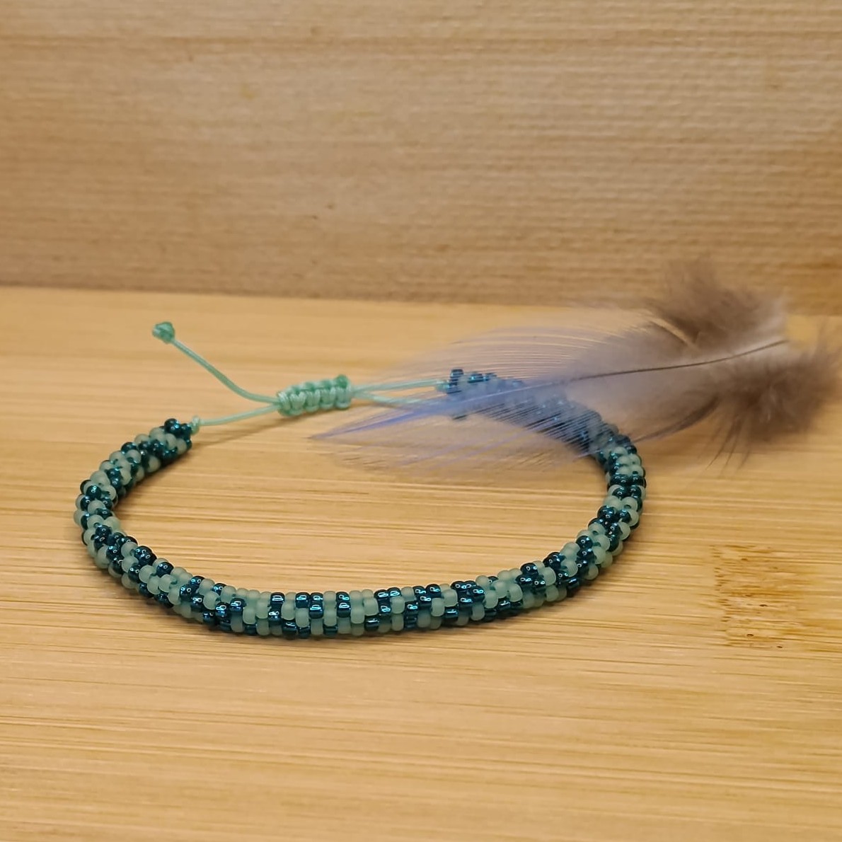 Náramek šitý technikou BRICK STICH - cihlový steh z rokajlu na nylonové šňůrce.