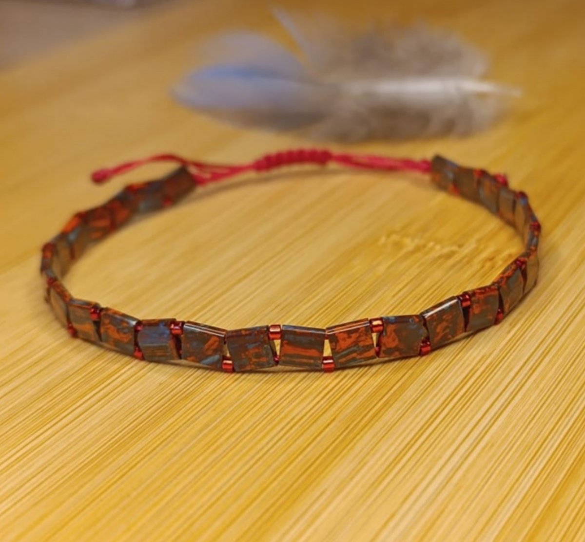Náramek navlékaný z TILA korálků na C-lon bead.Korálky jsou skleněné TILA velikost 5mm a rokajl Miyuky velikosti 11/.Neobsahuje žádný kov - vhodný pro alergiky.