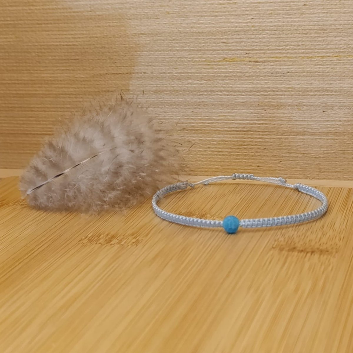 Náramek tkaný technikou macramé z C-lonu odstín sky blue, světle modrý dračí achát.Posuvné zapínání.Náramek je bez kovů - vhodný pro alergiky.