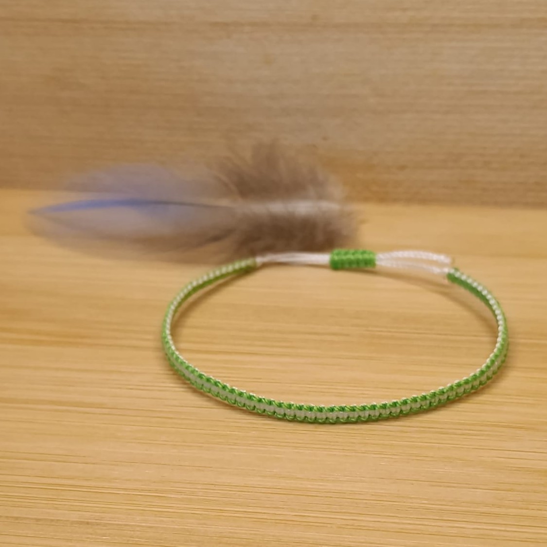 Náramek tkaný technikou macramé ze dvou odstínů C-lonu neon green a white ( zelená a bílá).Posuvné zapínání = variabilita velikosti.Náramek je bez kovů - vhodný pro alergiky.